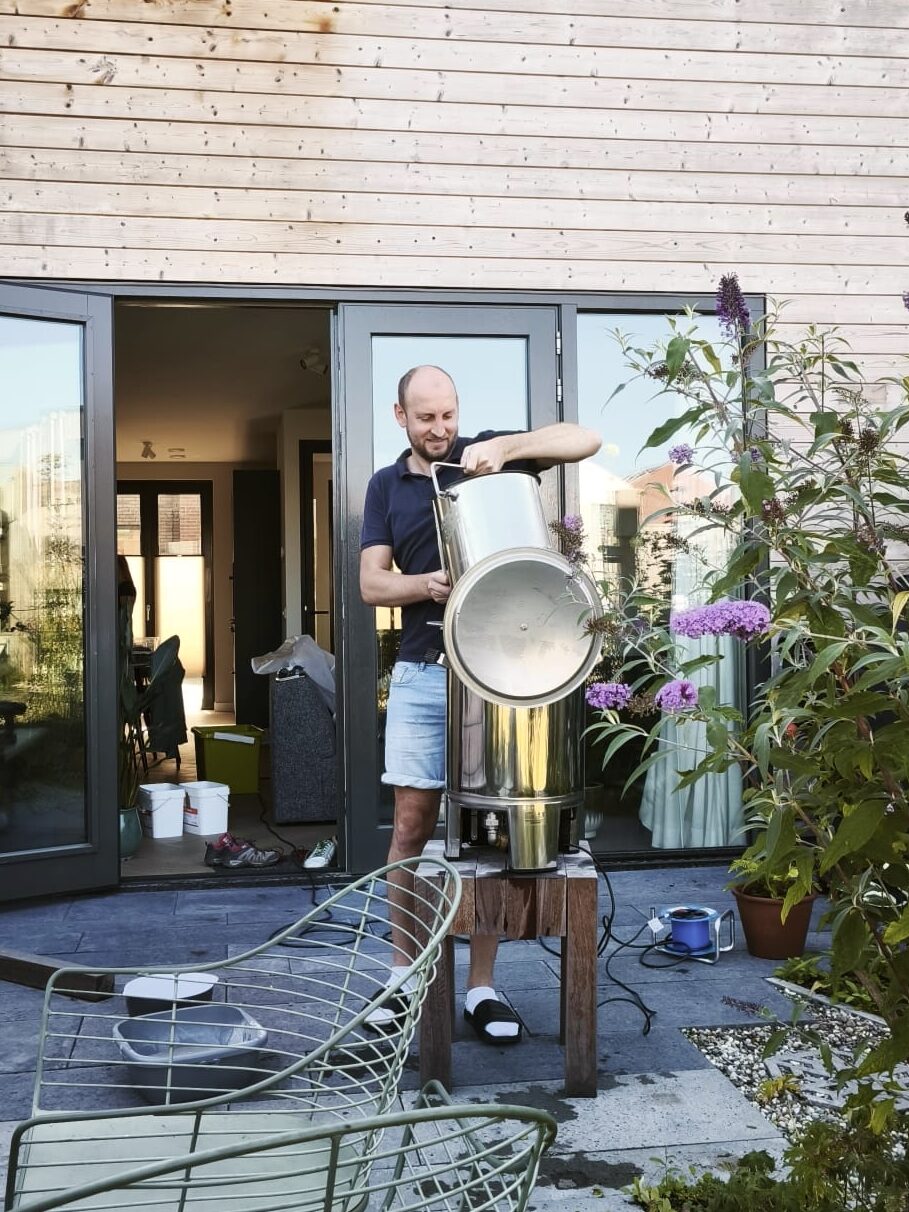 In 2016 besloot ik om te gaan starten met het brouwen van een eigen bier. Eerst met een simpel pakketje, maar al snel bestelde ik een ketel en brouwde ik met echte volle granen. Inmiddels heb ik mijzelf jaren kunnen verdiepen in het optimaliseren van het brouwproces, waardoor ik geleerd heb hoe ik een heerlijk fris bier kan brouwen.